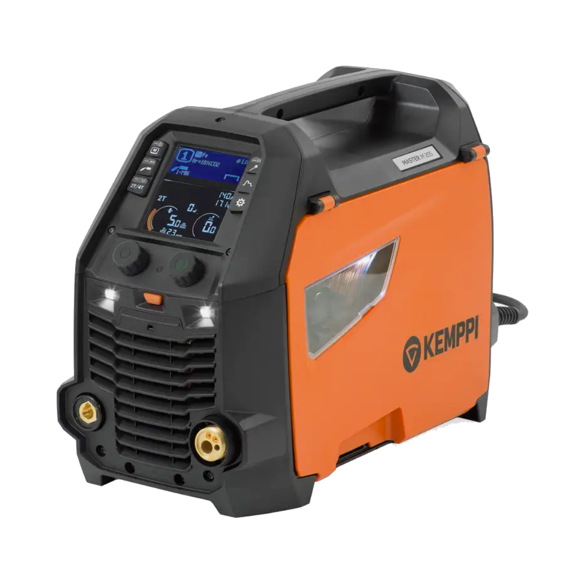 Migsvets Kemppi Master M 205 GM, Bärbara MIG/MAG-svetsmaskiner för total kontroll överallt. Master M 205 sätter en ny standard för kraft och prestanda i en bärbar MIG/MAG-svetsmaskin. Med en portabel, lätt konstruktion som är lätt att bära, får du en bärbar MIG/MAG-maskin som kan flyttas vart du än behöver den. Om du arbetar i trånga utrymmen har du en ljusstark och tydlig 5″ LCD-skärm och självladdande LED-lampor som kan tändas för ökad säkerhet. Lamporna fungerar oavsett om maskinen är kopplad till elnätet eller ej.
